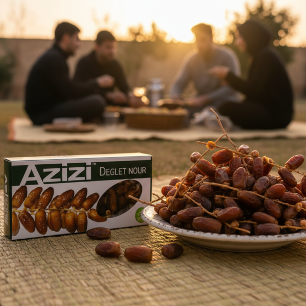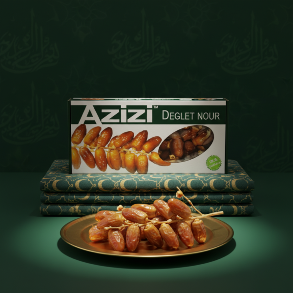 Salah satu kurma yang menjadi primadona yaitu kurma tangkai Azizi, dipetik langsung tanpa dilepas dari tangkainya, memberikan kesan seperti makan buah kurma langsung dari pohonnya. Rasa manis yang sedang, tekstur sedikit chewy dan bagian luar sedikit kering, cocok bagi Anda yang ingin mengonsumsi kurma yang tidak terlalu manis dan legit.
